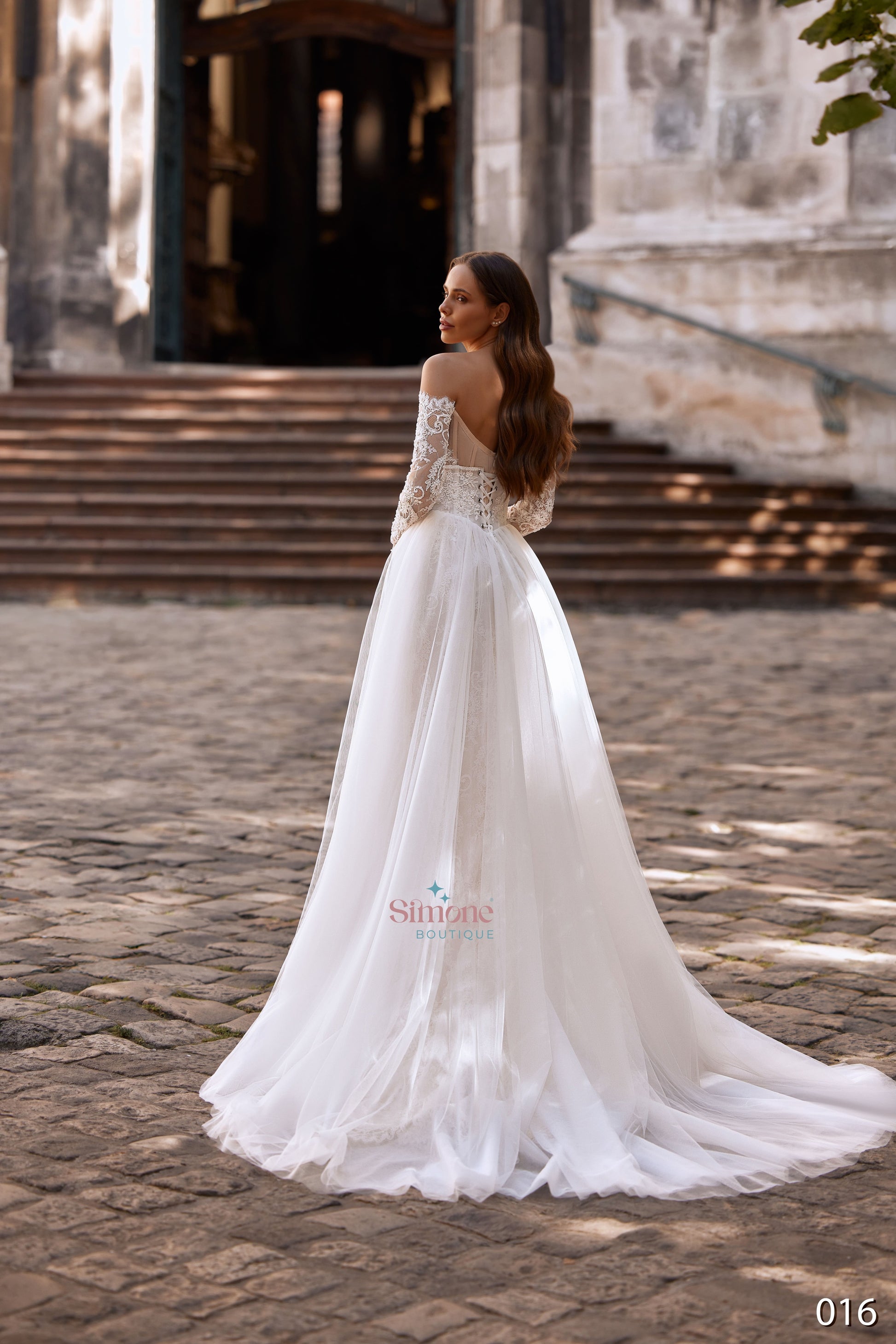 Modelul 26-16 imbina eleganta, versatilitatea si rafinamentul materialelor premium, fiind alegerea ideala pentru mireasa care isi doreste o rochie spectaculoasa, dar adaptabila stilului sau. Rochia este realizata din dantela Chantilly, renumita pentru textura ei fina, delicata si extrem de feminina, completata de tull moale care aduce lejeritate si fluiditate.